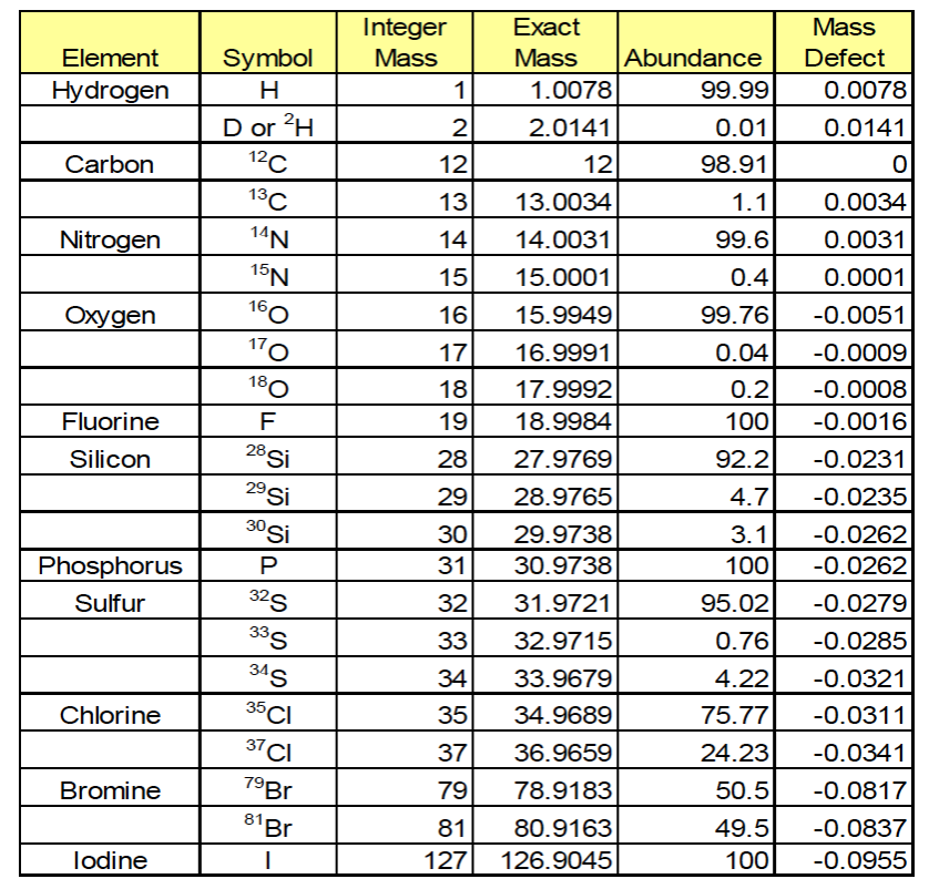 Nominal mass: sum of the integer masses of the constituent elements of a molecule (C=12, H=1)