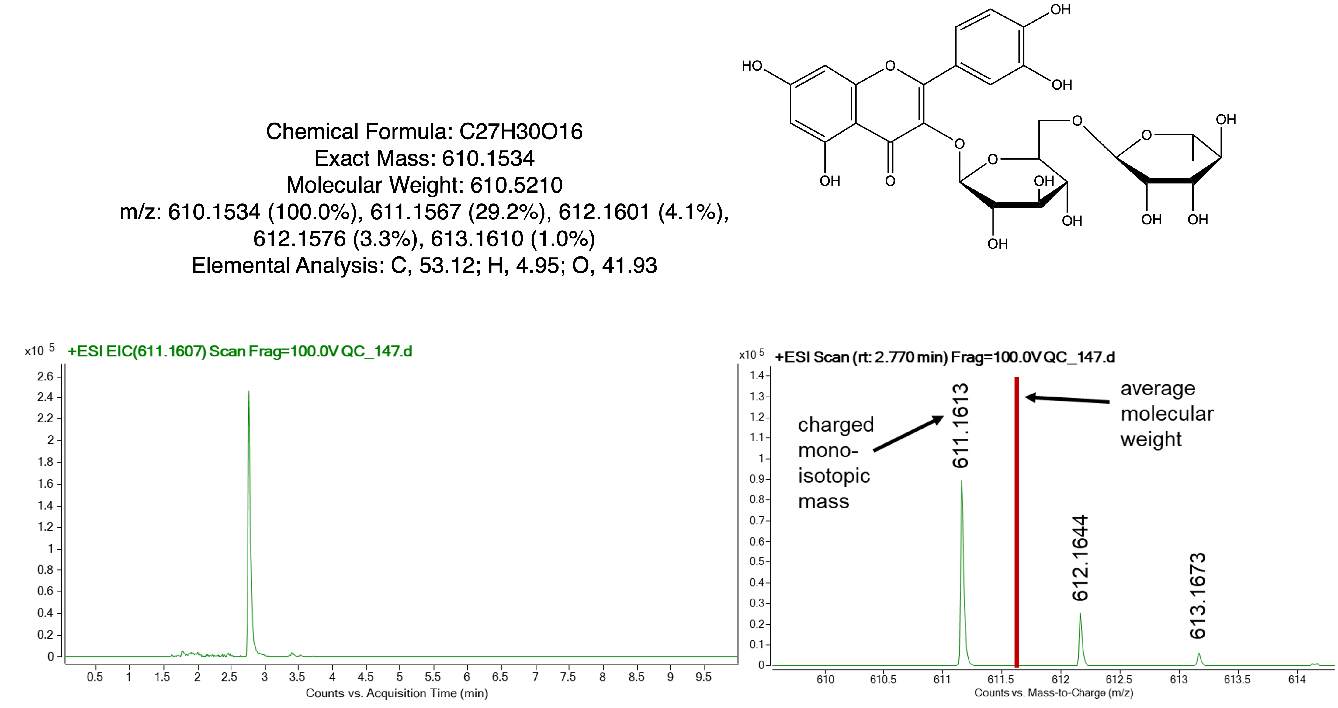 Monoisotopic mass: mass of a molecular given empirical formulate calculated using the exact mass of the most abundance isotope of each element (C=12.0000, H=1.0078)